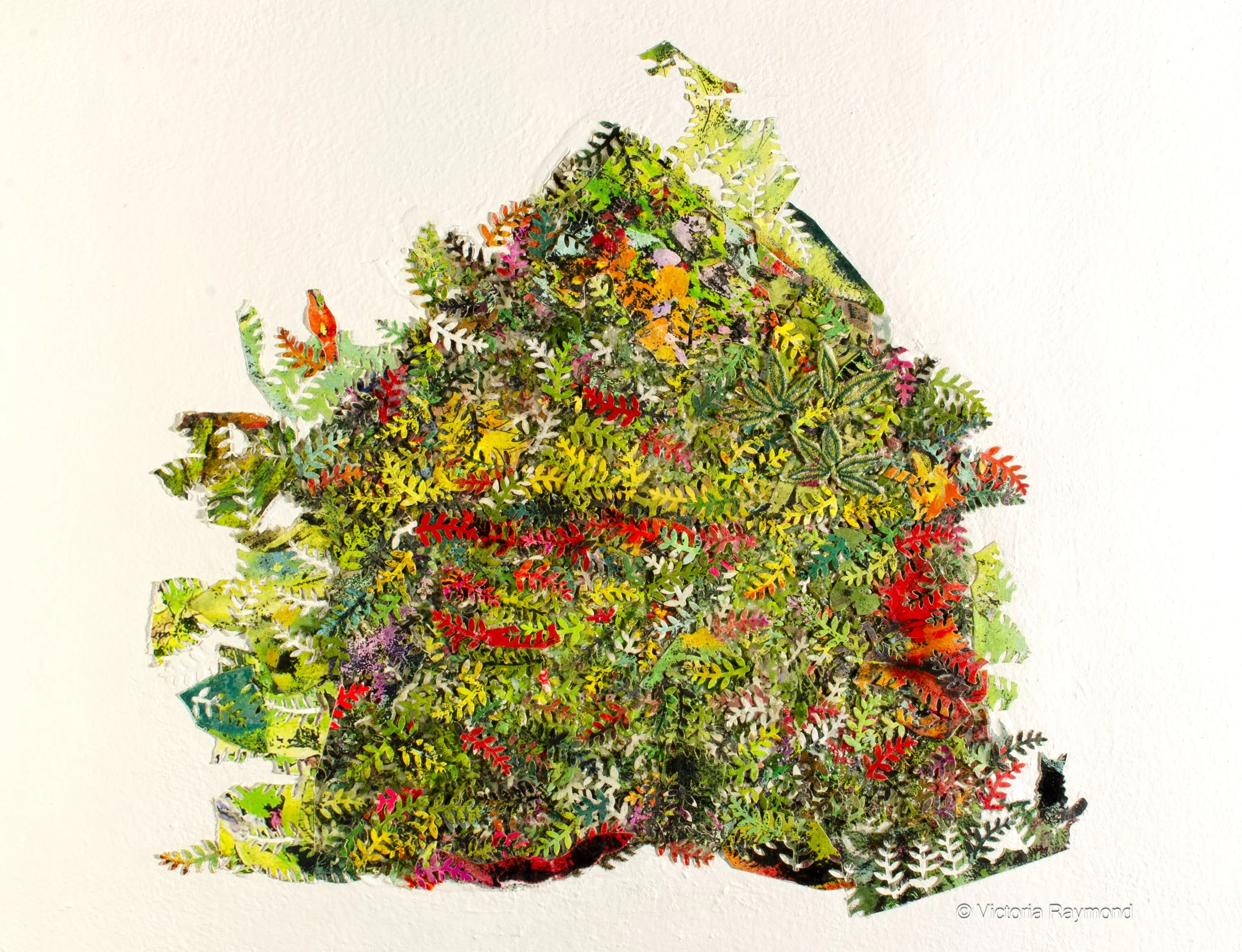 Whimsy and natural themes infuse these vibrant collages with curiosity and liveliness.